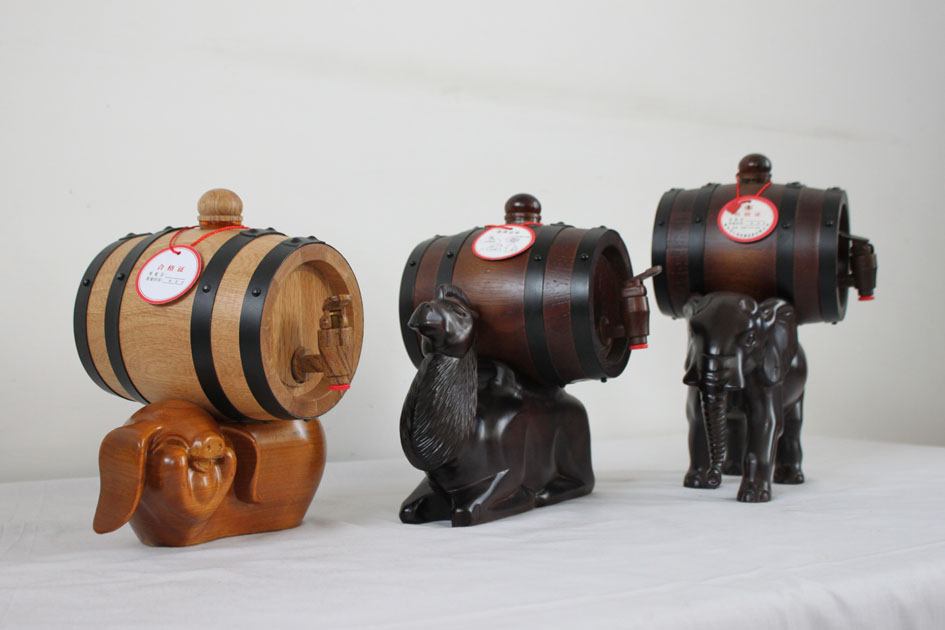 手工打造,不斷發(fā)展 把挑選的木材進行品質(zhì),我們只使用品質(zhì)好的原材料進行裁切打磨,每一塊二木材必須要平整統(tǒng)一,這樣在材料無蠟拼接時才可以無縫隙。為了使產(chǎn)品在日后使用時更長久衛(wèi)生,拼接成型的產(chǎn)品還要進行高溫預(yù)熱、殺菌、安裝端板等系列強化程序。至此,雛形產(chǎn)品便加工完成。為了使產(chǎn)品更加美觀牢靠,還要經(jīng)過磨砂拋光、烘烤碳化、壓箍等工藝進行美化、增加強度的處理,經(jīng)過的純手工處理后的酒桶才可以經(jīng)得起歲月考驗。